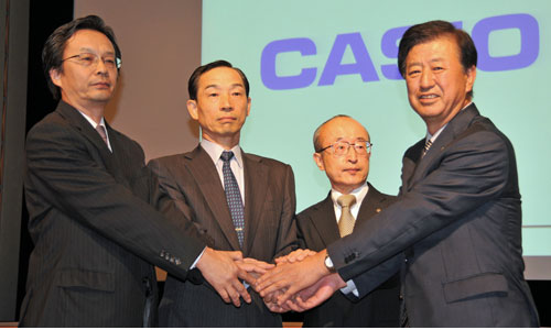 NEC(矢野薫社長)、カシオ計算機(樫尾和雄社長)、日立製作所(川村隆社長)の3社は9月14日、2010年4月に各社の携帯電話端末事業を統合し、新会社「NECカシオ モバイルコミュニケーションズ」を設立すると発表。同日、都内で合同記者会見を開いた。