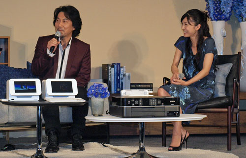 エプソン販売は9月17日、同日発表したインクジェットプリンタ「カラリオ」新シリーズのCM発表会を開催した。会場にはCMキャラクターに起用された役者の役所広司さんと女優の竹内結子さんが登場し、初共演となったCM撮影時の雰囲気や、お互いの印象について語った。同CMは10月3日から全国一斉にオンエアされる。