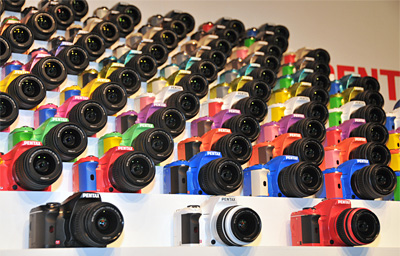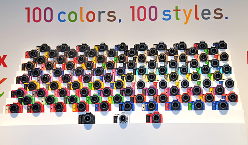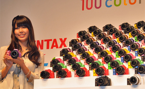 新製品の国内向けマーケティングについては、「非常にたくさんの層がカメラに対する要求をもたれているので、この際ノンセグメンテーション・マーケティングをやってみようと考えた。これがペンタックスの渾身の一撃」と宣言すると、オーダーメイドで100種類の製品カラーを選択できるサービス「PENTAX K-x 100colors,100styles」を紹介した。