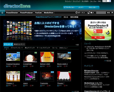 さらに、「PowerDirector」専用のオンラインコミュニティ「directorZone」に登録すると、世界の18万人超のユーザーが作成したエフェクトやタイトルなどのテンプレートを自由にダウンロードできるようになる。