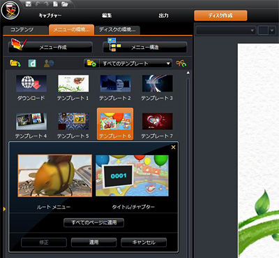 ディスクメニュー画面の挿入やメニュー構成を簡単に指定できる