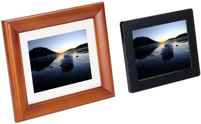 色はブラックで、付属する木製フレームを取り付けることもできる。本体の向きに合わせて静止画を縦横に回転させる機能を備える。このほか、時計・カレンダー表示や6種類のエフェクトから選べるスライドショーにも対応する。