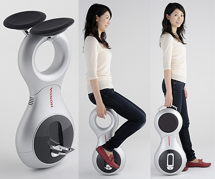 ホンダ、斬新な乗り物「U3-X」、自動バランスの電動一輪車で斜めの移動も