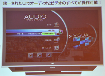 また、日本ビクターとケンウッド両社のノウハウを生かしたデジタルアンプ技術を採用。入力した音楽信号に悪影響を与える干渉やノイズを排除し、高精度な信号増幅を可能にした。操作面では、オーディオとビデオのすべてが操作できるユーザーインターフェイスを備え、「観たい、聴きたい、録りたい」ものを直感的に選択できる。