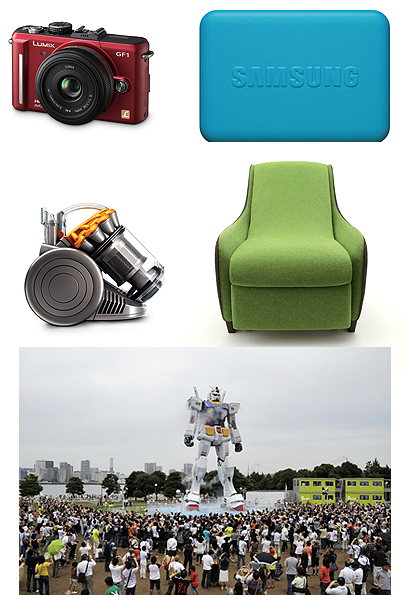 左上からパナソニックのLUMIX DMC-GF1C、サムスンのN310、ダイソンのDC26 タービンヘッド エントリー、パナソニックのEP-MS40、そしてGREEN TOKYO ガンダムプロジェクト