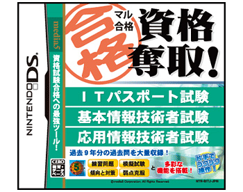 メディアファイブは、ニンテンドーDS用の資格試験学習ソフト「マル合格資格奪取! ITパスポート試験 基本情報技術者試験 応用情報技術者試験」を2010年1月14日に発売する。価格は4800円。