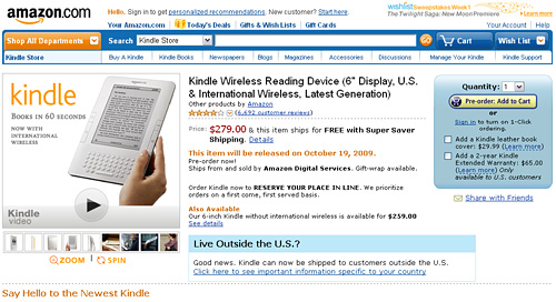 アマゾン、電子書籍リーダー「Kindle」を日本含め100か国以上で販売 279ドルで