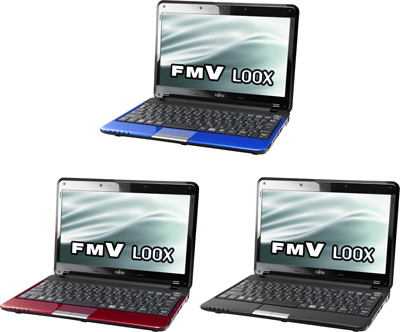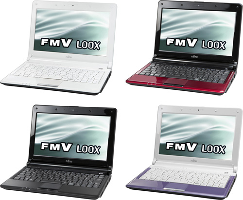 「LOOX Mシリーズ」は10.1型液晶を搭載したネットブック。OSにはネットブック向けのWindows 7 Starter 32ビット正規版を採用したほか、駆動時間を従来モデルの約2.7時間から約3.5時間に向上させた。カラーはミルクホワイト、ルビーレッド、シャイニーブラック、ライトラベンダーの4色。