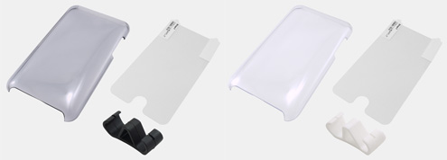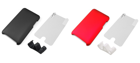 セット3モデルはいずれも、第2世代のiPod Touch専用のジャケット、本体表面保護フィルム、動画視聴に用いられるビデオ・スタンドの3点をセットにしたもの。保護フィルムは接着面にシリコン膜をコーティングし、接着剤などを使わずに貼り付け/貼り直しができる。また、ビデオ・スタンドは角度の調節が可能なほか、持ち運び時にはイヤホン巻き取りとして使用できる。