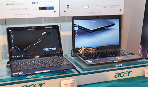ラインアップと実勢価格は、11.6型ワイド液晶とCPUにCeleron SU2300(1.2GHz)搭載の「AS1410-22」が5万9800円前後、13.3型ワイド液晶とCore 2 Duo SU9400(1.4GHz)を搭載した「AS3810T-P22」が8万9800円前後、同モデルにOffice Personal 2007をプリインストールした「AS3810T-P22F」が10万9800円前後の見込み。