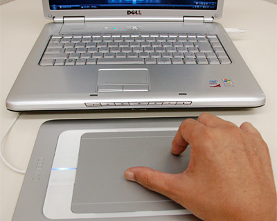 さっそく、指によるマルチタッチ操作を試してみた。基本的な使い方のイメージは、ノートPCのタッチパッドと同じだ。タブレットの表面を指でなぞるとマウスが移動し、1回の軽いタッチでアイコンなどを選択、2回連続でソフトを起動したり、フォルダを開くといった操作が可能。タッチパッドより面積が大きい分、操作がしやすい。しかし、「Bamboo Fun」の本当の実力は、タッチパッドの代用操作にとどまらない、2本の指によるマルチタッチ入力にある。