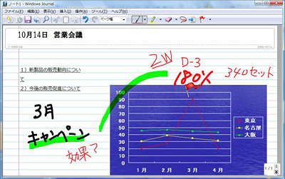 また、Windows VistaにはPCで手書きのメモ書きができる「Windows Journal」というソフトが搭載されている。しかし、ペンタブレットがなければほとんど宝の持ち腐れ。「Bamboo」シリーズを導入することで、はじめて会議などのメモとして有効活用できる。こうしたPCの活用の幅を広げてくれるのもペンタブレットの大きな魅力だ。