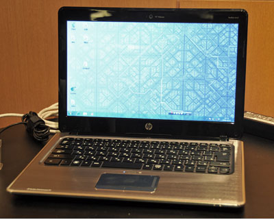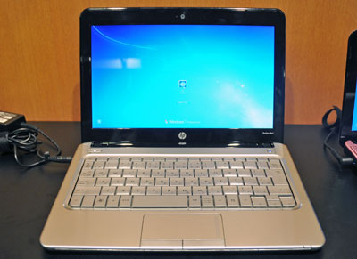 「HP Pavilion Notebook PC dm1」もモバイルPCの新モデルで、解像度1366×768ドットの11.6型ワイド液晶を搭載する。重さ約1.5kg、最薄部約19.8mmの薄型軽量ボディに、CULV(消費者向け超低電圧)プロセッサのCeleron SU2300(1.2GHz)を搭載する。
