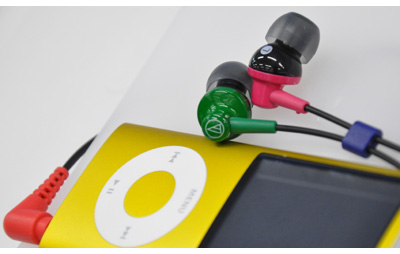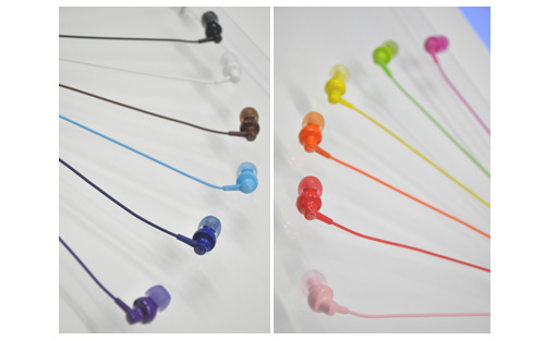 なかでも「クレイジー」は非常に斬新なカラー。このモデルはイヤホン部がピンクとグリーン、ケーブルを束ねる際に使うアジャスタがブルー、プラグ部がレッド、ケーブルやイヤーパッドはブラックというもの。なお、そのほかは単色で、カラーバリエーションはブラック、ホワイト、ブラウン、ライトブルー、ブルー、パープル、ピンク、ライトグリーン、イエロー、オレンジ、レッド、ライトピンクの12色。ケーブルはY字型で、長さは1.2m。