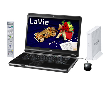 最上位モデル「LL770/VG」には、ワイヤレス接続が可能な地上・BS・110度CSデジタルチューナー1基が付属する。無線LANを利用することでPC本体に番組を送信でき、自宅のさまざまな場所にPCを持ち運んで番組が楽しめる。また、PC本体に録画したコンテンツを管理する「暗号キー」を搭載し、デジタルチューナーを外しても録画番組を視聴できる。