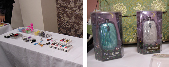 「女性のためのネットブックDay」は、ハッピーコムの会員や高千穂大学の学生など計35名ほどが参加。日本エイサーの「Aspire one D250シリーズ」のほか、バッファローのマウス「キラキラマウス(BOMU-MLSシリーズ)」、ソリッドアライアンスのハート型やキャラクターを用いたユニークなUSBメモリなど、女性をターゲットとした製品も展示された。カラフルでユニークなUSBメモリを初めて知ったという参加者は、「値段が少し高くても、かわいいほうがいい。お店では見かけたことがないので、もっとたくさん置いてあったらいいと思う」と感想を語っていた。