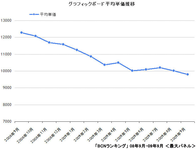 今回紹介したいずれのランキングをみても、トップ5の製品は市場推定価格が1万円以下の製品がほとんど。グラフィックボードの08年9月-09年9月までの税別平均単価の推移をみると、08年9月は1万2千円台だったものが、09年9月では1万円を切っている。低価格モデルが売れ筋の中心だ。