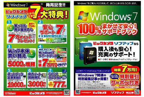 ビックカメラとソフマップ、Windows 7の購入者に「7大特典」を提供