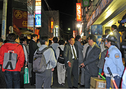 「ドスパラ」の販売員によると、「Vista発売時よりも、多くの人が集まった」という今回のイベント。秋葉原では「ドスパラ」のほかにも、ソフマップやT-ZONEなど多くの店舗がWindows 7の深夜販売を行っていた。販売を開始した店舗が軒を連ねる路地は、多くの人で埋め尽くされたが、警備員が交通整理にあたったため、大きな混乱はなかったようだ。この日の秋葉原は、終電近くまでお祭りムードが続いていた。