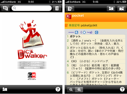 大修館書店の約8万9000語収録「ジーニアス英和辞典MX」、約6万9000語収録の「ジーニアス和英辞典MX」、約5万8000語収録の「明鏡国語辞典MX」の辞書3点をiPhoneの大画面で閲覧できるアプリケーション。カタカナ読みで英和辞典の辞書引きが可能な「カタカナ検索」機能を搭載し、スペルが分からなくても英単語を検索できるほか、カタカナの単語を検索した際に、英和・和英・国語の各辞書から検索結果を表示することが可能。