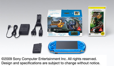 あわせて、PSP本体に専用ソフト「モンスターハンターポータブル 2nd G」のBest版を同梱した「PSP『プレイステーション・ポータブル』新米ハンターズパック」を12月10日から数量限定で発売する。PSPの本体カラーはバイブラント・ブルーのみ。価格は1万8500円。