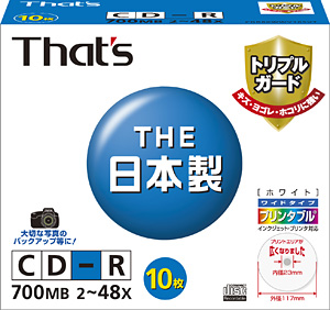 スタート・ラボは、「That's」ブランドの新製品として、耐久性に優れる特殊ハードコート「トリプルガード」を施したデータ用CD-R「CDR80W」を、11月12日に発売する。価格はオープン。