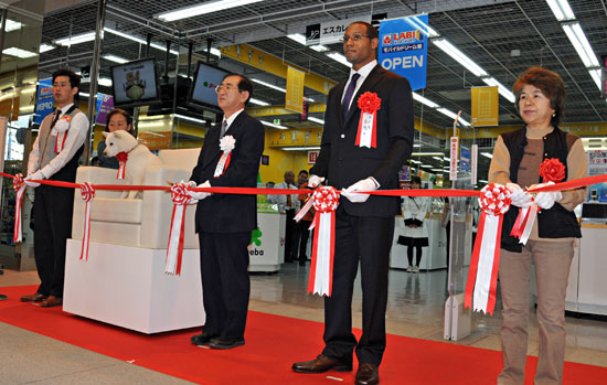 ヤマダ電機は11月6日、旧「LABI池袋」(東京・豊島区)をリニューアルし、日本最大級の携帯フロアや各種体験コーナーを設けた「LABI(ラビ)1 池袋モバイルドリーム館」をオープンした。オープンニングセレモニーには、ソフトバンクモバイルのCMでお馴染み「白戸家の人々」の「お父さん」ことカイ君や、「お兄さん」ことダンテ・カーヴァーさんが登場し、テープカットを行った。
