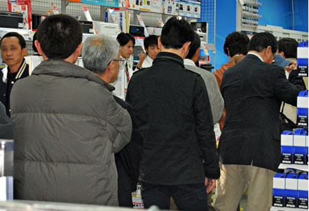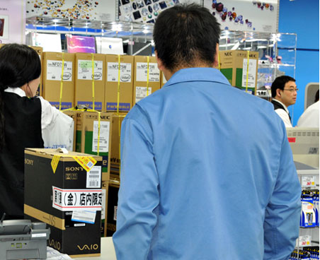 入店した人々の多くが、オープン初日の限定特価品の中でも、ノートPCを買い求めていた