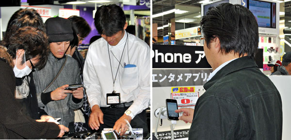 また、1階のソフトバンクモバイル専用フロアや、6階のソニー・マイクロソフト専門フロアの各種体験コーナーでは、iPhoneのアプリケーションを操作する人や、11月1日に発売した携帯型ゲーム機「PSP go」を実際に手にとってプレイする人の姿が多く見られた。
