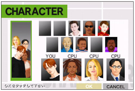 個性的な10人のキャラクターからプレーヤーと対戦相手を選択