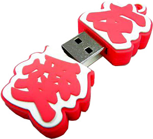 ピンク色の文字「友愛」をデザインしたUSBメモリ。「友」の部分がメモリ本体、「愛」がキャップになっている。容量は2GB。対応OSはWindows Vista/XP、Mac OS X 10.2以降。サイズは高さ55×幅27.5×奥行き10.5mm、重さは14g。