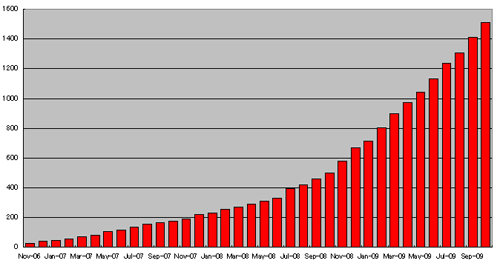 06年11月に発売を開始したBDソフトは、09年5月時点で累計1000タイトルに到達し、その後の5か月間で増え続け、10月末の時点では1500タイトルを突破した。