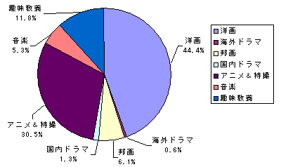 また、10月末時点でのBDソフトのジャンル別タイトル数も明らかにした。ジャンル別シェアでは、洋画が44.4%ともっとも多く、次いでアニメ&特撮が30.5%だった。これら2つを合わせると全体の7割以上のシェアを占める。このほかのジャンルは、趣味教養が11.8%、邦画が6.1%、音楽が5.3%だった。