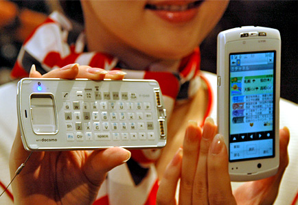 「F-04B」は世界初の「セパレートスタイル」を採用した富士通製端末。ディスプレイユニットとキーユニットの2つからなるのが特徴。普段はスライド式ケータイとして利用し、それぞれのユニットを分離して使えば、キーユニットで電話しながら同時にディスプレイユニットでメールを作成したり、電話帳を開いたりすることができる。ディスプレイは、タッチ操作に対応した3.4型液晶を搭載し、手書き文字認識機能「フリータッチライティング」に対応する。