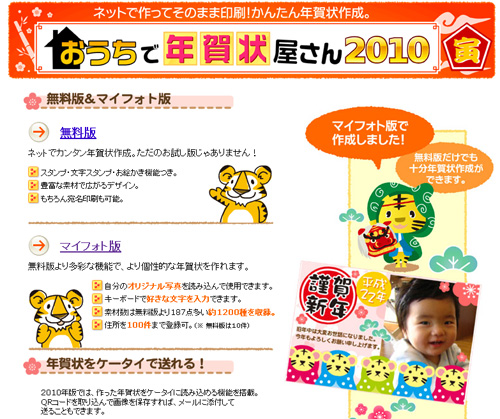 がくげいは11月10日、年賀状作成サイト「おうちで年賀状屋さん2010」を開設した。利用料は無料。