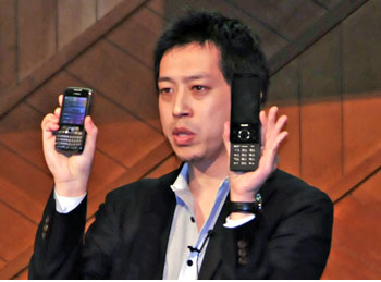 続いて越川慎司・モバイルコミュニケーション本部 本部長がWindows Mobile 6.5の操作性やサービスを説明するデモを行った。