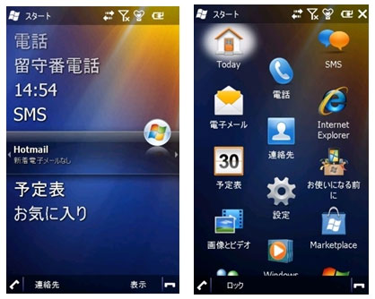新OSでは、ユーザーインターフェイスを一新。「現行のWindows Mobile 6.1では細いペンを使って操作しなければならず、これは片手での操作に慣れている日本のユーザーには受け入れられなかった。そのため、今回はメニュー画面などアイコンのサイズを大きくし、すべての操作を指で行えるようにした」(越川氏)という。