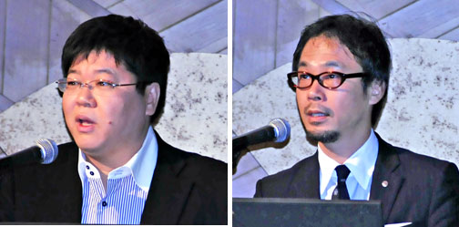 カプコンの手塚武・開発統括本部MC開発部長と上原和彦・コナミデジタルエンタテイメント 執行役員