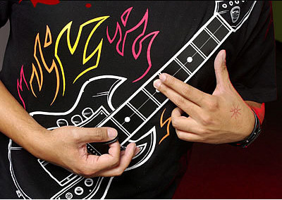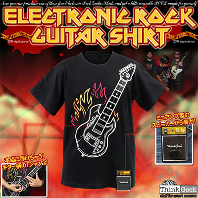 Tシャツ胸部にエレキギターのネックをイメージしたイラストパネルを搭載。付属のマグネット式のピックを使って、実際に音を出すことができる。演奏時の音階はEから1オクターブ上のEまでで、通称「パワーコード」と呼ばれるロックに適した5度コードで演奏できる。