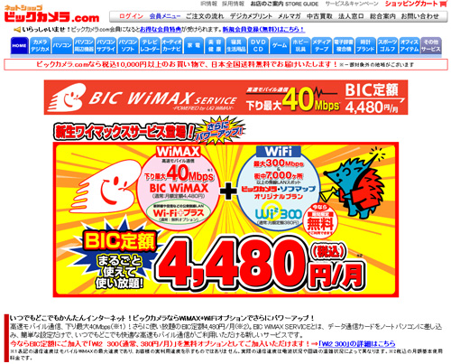 ビックカメラ、WiMaxサービスに最大300Mbpsの公衆無線LANサービスを提供