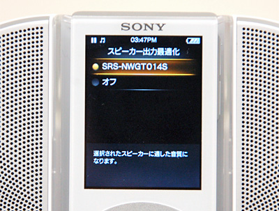 気になるサウンドだが、コンパクトサイズのわりに音質が良く仕上がっていて、近くで聴いているぶんには、快適に楽しめそうだ。例えば、仕事中に机の片隅に置いて再生したり、就寝前にベッドのサイドテーブルで音楽を流すといった用途に最適。ウォークマン本体には「スピーカー出力最適化」という設定項目があり、これをオンにしておくと、さらに音質を向上させることができる。