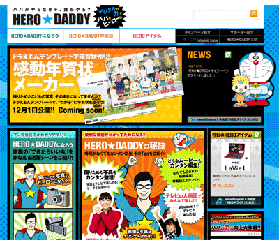 「仕事が忙しい」「家族とコミュニケーションがとれない」などの悩みをもつパパが、家族の頼れる“ヒーロー”になるよう応援するキャンペーン。最新のPCや周辺機器、サービスを活用して「できたらいいな」と思うことが実現するように、専用のWebサイトで情報提供する。