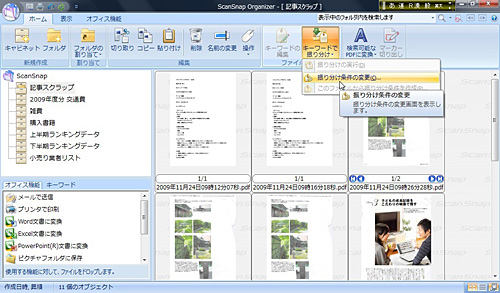 スキャンしたデータを管理するのが「ScanSnap Organizer V4.1」。スキャンした画像をファイルを開かずに閲覧したり、PDF内に記載されているキーワード情報を基に保存先を自動的に振り分けたりすることができる。