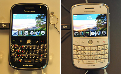 BlackBerry Boldのブラックモデル(左)と限定のホワイトモデル