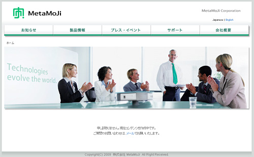 MetaMoJiのトップページ(コンテンツは現在作成中としている)