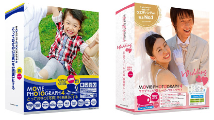 「Wedding MOVIE PHOTOGRAPH 4」には、エンドロールや両親への手紙、生い立ちムービーなど、ウェディングムービー作成用のコンテンツを収録した。招待状、席次表、席札などを印刷するペーパーアイテム印刷ソフトを付属する。対応OSはいずれも、Windows 7/Vista/XP。