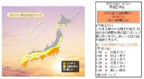 2010 全国の初日の出マップと初日の出のピンポイント情報(サンプル画像)