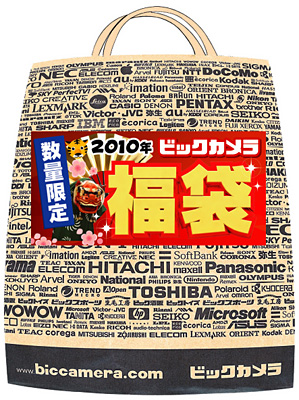 ビックカメラは、毎年恒例となる西暦にちなんだ福袋「2010年スペシャル袋」をはじめとする各種の福袋を、2010年元旦の朝10時から各店で販売すると発表した。なお、札幌店は元旦朝9時、柏店は1月2日朝10時からの営業となる。