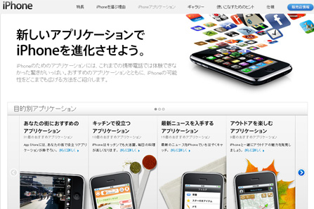 08年7月に開設した「App Store」では、ゲームやビジネス、ニュース、スポーツ、健康、レファレンス、旅行など、20のカテゴリのアプリケーションを提供する。ダウンロード本数は、09年9月に20億本を超えた。