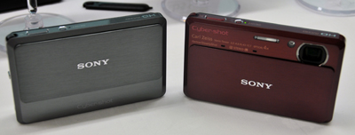 ソニーが開発した近接無線転送技術「TransferJet」に対応。通信モジュールを内蔵した専用メモリースティック(容量8GB、実勢価格:1万円)を使用することで、カメラ同士をかざしたり、専用リーダでのPC画像の転送や保存、薄型テレビでの写真再生などができる。2機種とも、実勢価格は4万5000円前後の見込み。